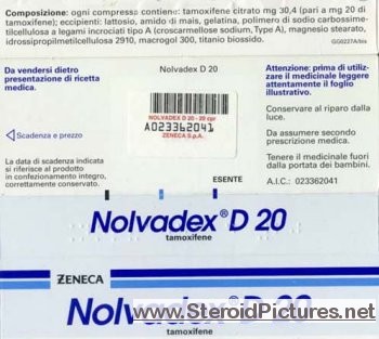 Tamoxifen citrate, or better known as Nolvadex, is a potent non-steroidal anti-estrogen usually intended for use in estrogen dependent tumors (i.e. breast cancer). It works by competitively binding to target estrogen sites, such as the breast. This drug is the most popular anti-estrogen among steroid users, who take tamoxifen to prevent the effects of estrogen in the body. Estrogen build-up is most often the result of the aromatizing affect of steroids, especially at high doses. Tamoxifen can aid in preventing edema, gynecomastia, and female pattern fat distribution, all of which might occur when a man’s estrogen levels are too high, common with injectable steroids. Such effects may also occur when androgen levels are too low, making estrogen the predominant hormone. This situation can arise when endogenous androgens have been suppressed by the prolonged use of exogenous steroids followed by the cessation of these exogenous sources. Nolvadex pictures: