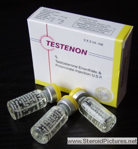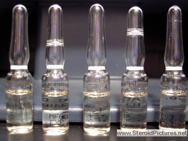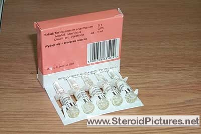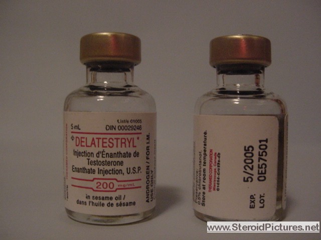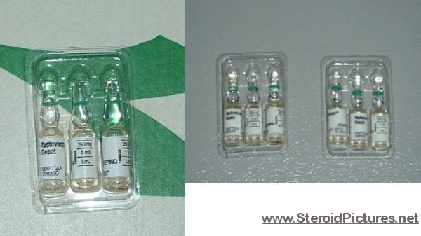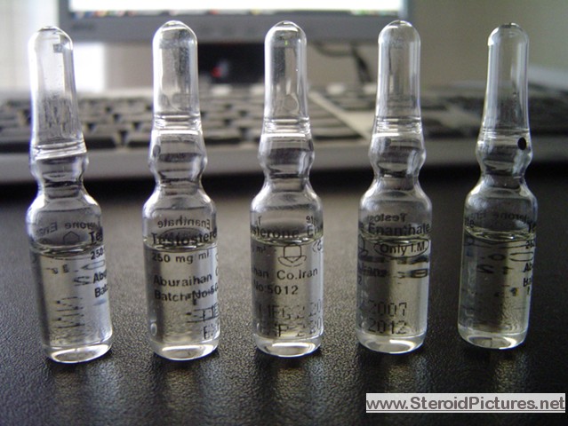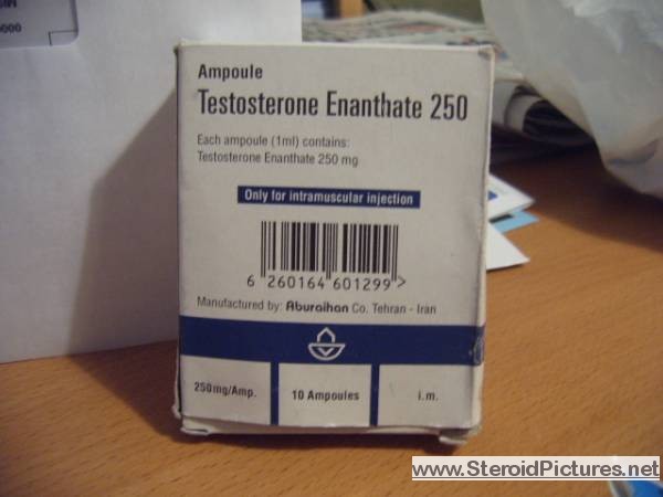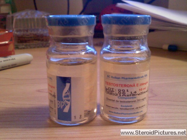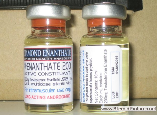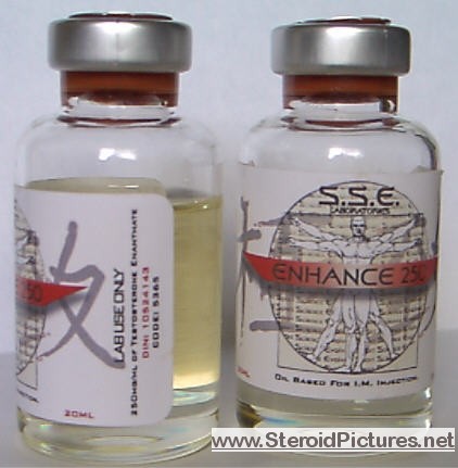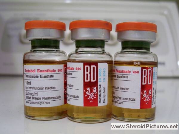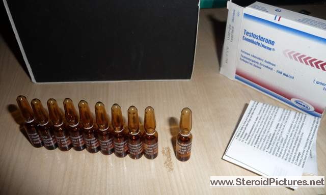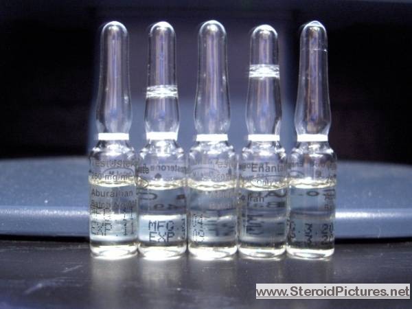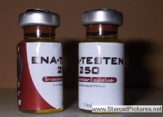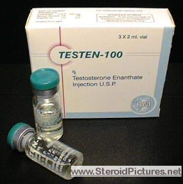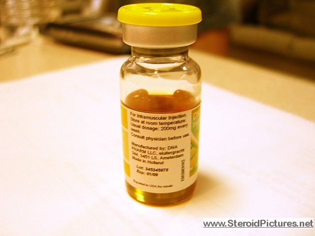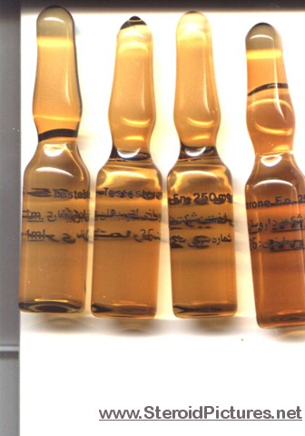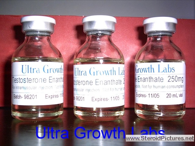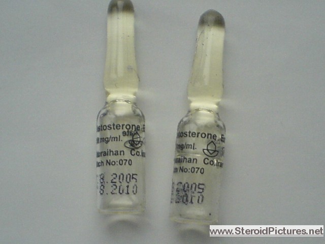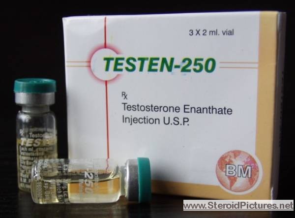 Testosterone Enathate possesses a medium range half-life of about ten days, and is detectable for up to three months. Uses: A running dosage of testosterone is generally in the range of 200-600mg per week, though in advanced cycles, doses of 1,000 milligrams or more is possible. Testosterone is also commonly stacked with other steroids, such as Deca-Durabolin, Equipoise, Fina, and Winstrol, and non-steroids, such as Human Growth Hormone. Note that use of St. John’s Wort may decrease testosterone levels as the herb is an inducer of (i.e. speeds up) the cytochrome enzyme pathway by which testosterone is metabolized. Cautions: Use of testosterone by those who have not finished growing creates a risk of premature sealing of the epiphyseal growth plates in the long bones. Other side effects include edema (water retention), increased aggression, excitation, sleeplessness, body hair growth, gynecomastia, and acne. Testosterone enanthate pictures: